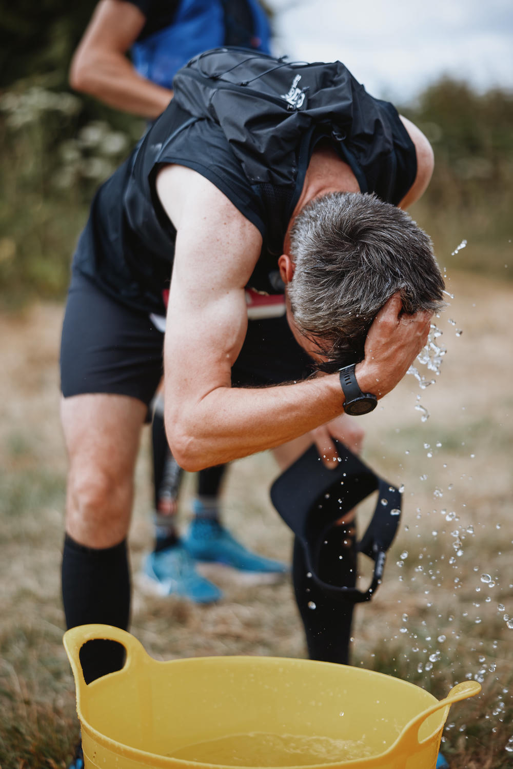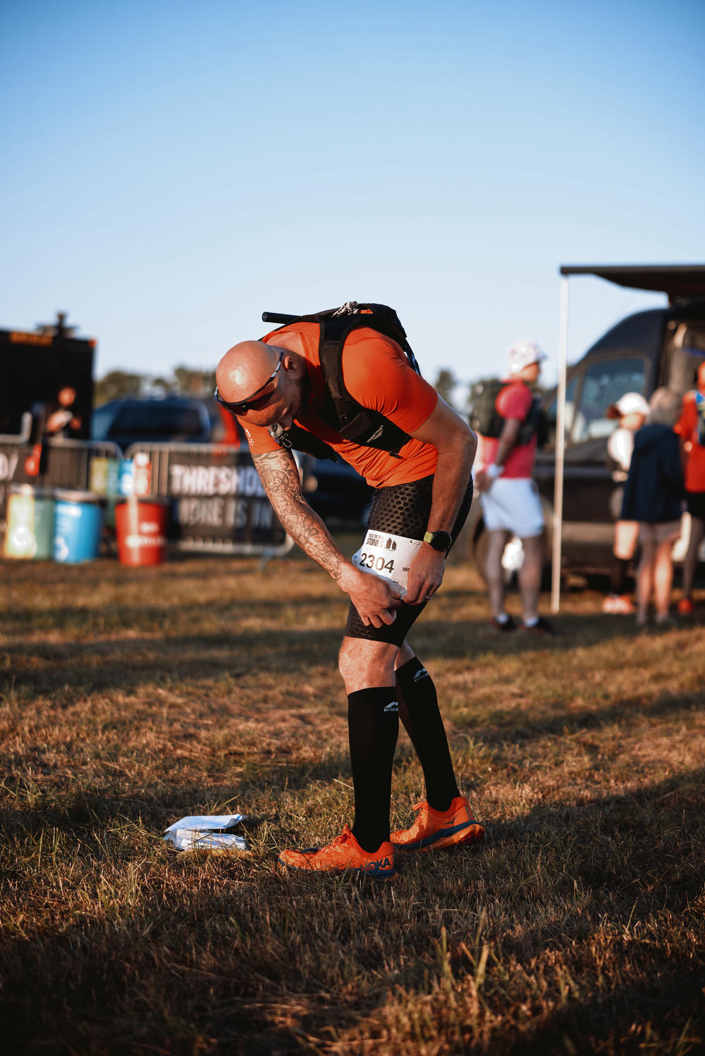 The finish line had all the best emotions that I associate with an ultra. The impatience and anxiety as loved-ones wait for their runner. The joy and sense of relief as people cross the line at the end of a hot and exhausting day. The Threshold team however was steeling themselves for what was going to be a long night supporting their runners. Running back along the course gave me the opportunity to catch runners as they realised they had made it.