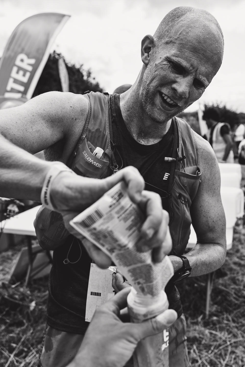 The finish line had all the best emotions that I associate with an ultra. The impatience and anxiety as loved-ones wait for their runner. The joy and sense of relief as people cross the line at the end of a hot and exhausting day. The Threshold team however was steeling themselves for what was going to be a long night supporting their runners. Running back along the course gave me the opportunity to catch runners as they realised they had made it.