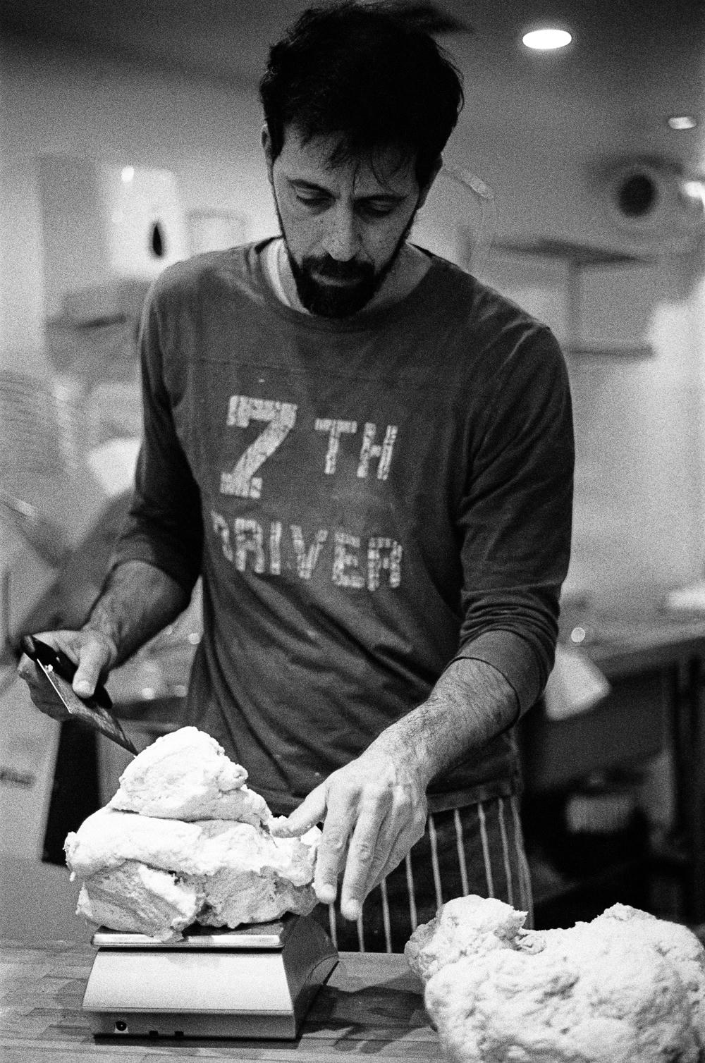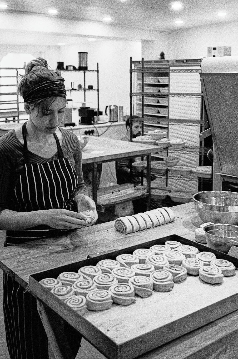 Now, the bakery was tight, with lots of obstacles to manoeuvre around; but I don’t think that was the issue. I’ve been a 35mm shooter for a good few years, and as I mentioned in my last issue, I’ve been getting much more comfortable taking pictures close to my subject. In fact I’d go as far as to say I feel more comfortable in close — standing across the room with a telephoto makes me feel like an unwanted onlooker. I’m now looking for a clear subject filling the frame but with enough context to place them in their environment. I’m getting close enough with a 35mm now that I’m starting to lose that context.