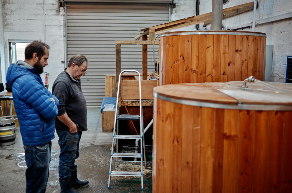 Keith was fairly adamant that the rest of the process isn’t as visually interesting — just “men at work” preparing all the pumps and pipework needed to move their various brews between containers.