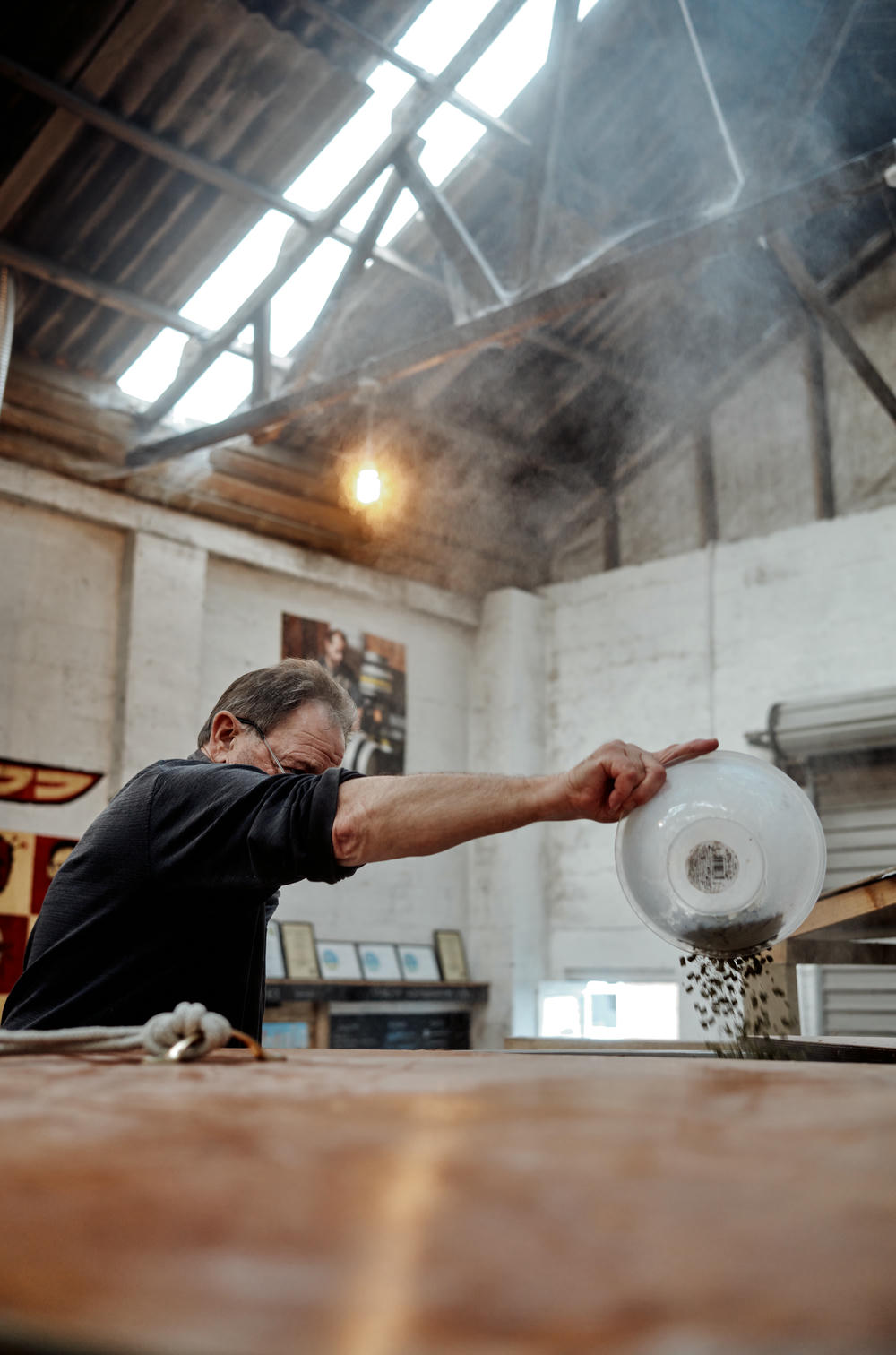 The first stage requires pre-heating the mash tun with 67°C water and opening up the near dozen bags of grain that will make up this brew. Keith’s incredibly pragmatic attitude immediately became clear when one stubborn bag that refused to open properly was quickly and neatly slashed open.