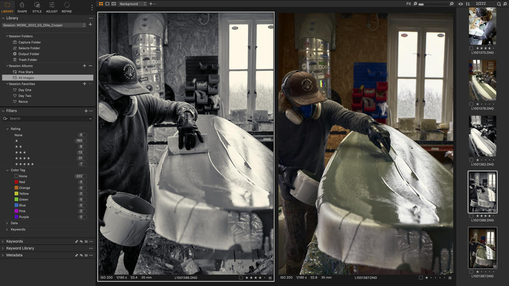 Using Capture One Sessions for all my edits, I can easily copy the whole shoot and start afresh whilst maintaining past edits, or do as I did here — hide all the edits and select images with a colour tag rather than a star rating. This approach easily allowed me to cross-reference the two edits and see which images made the cut on both occasions.
