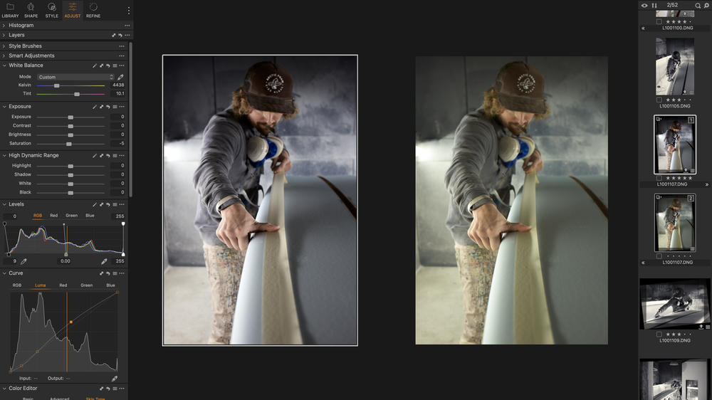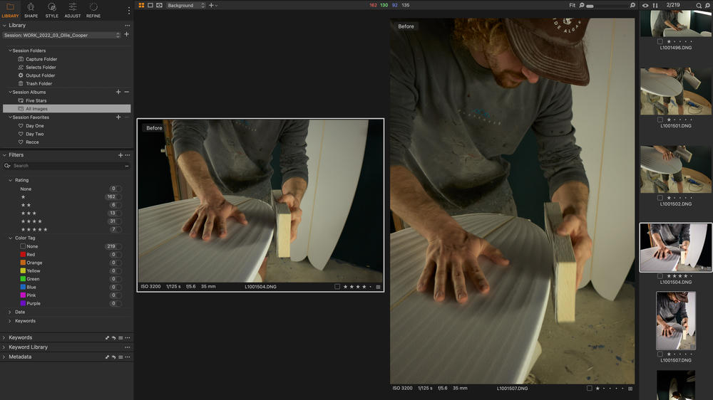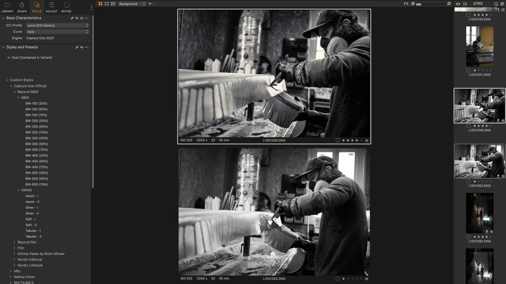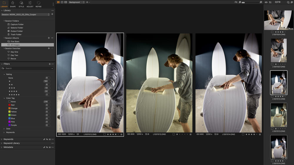 Using Capture One Sessions for all my edits, I can easily copy the whole shoot and start afresh whilst maintaining past edits, or do as I did here — hide all the edits and select images with a colour tag rather than a star rating. This approach easily allowed me to cross-reference the two edits and see which images made the cut on both occasions.