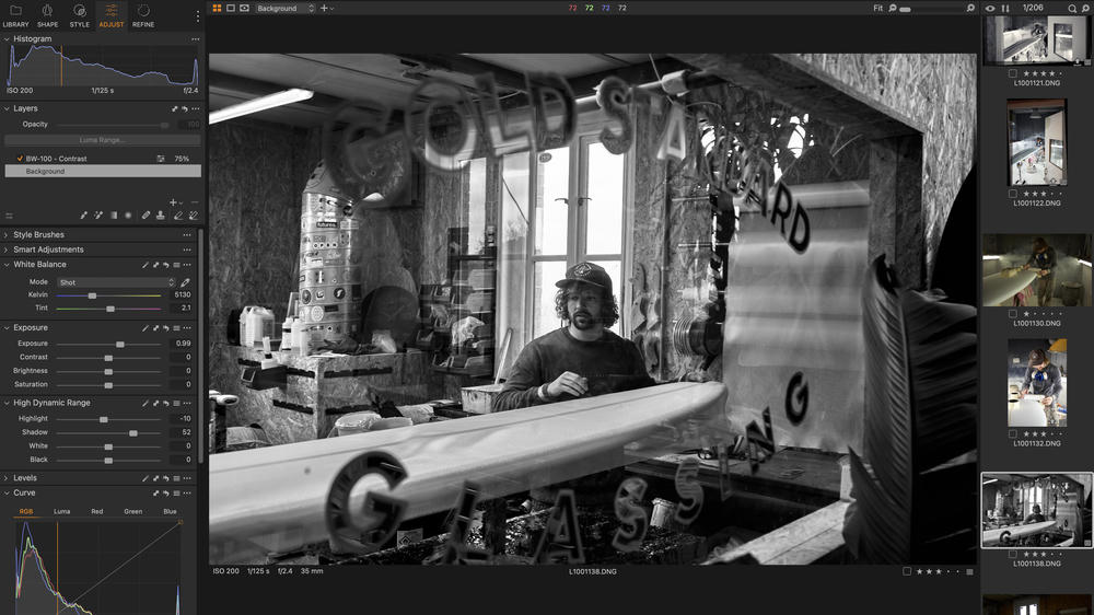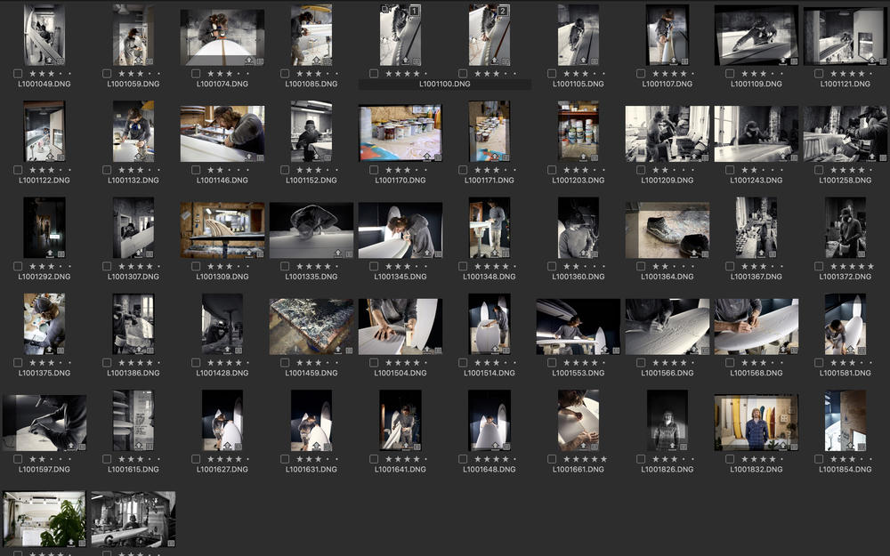 Were I to tackle this shoot again, I’d ensure I gave myself the extra images to build a compelling narrative. Equally, because the process of making a single surfboard is split up into distinct processes carried out days apart, I don’t have the thread of a singular board being made to tie the images into a logical sequence. Most importantly, I would also aim to give a better sense of Ollie and his personality.